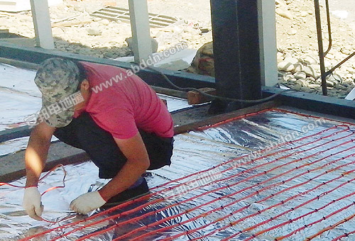 新疆烏魯木齊頭屯河區某售樓中心電地暖采暖系統安裝,安邦特派專業的技術人員到現場進行實地勘察。根據實際的安裝環境與地區溫度需求,綜合考慮各種因素,采用濕式安裝方式,發熱電纜平鋪安裝功率130W/m2,為客戶提供完整的電采暖解決方案。