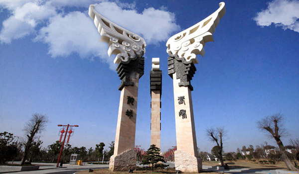 遠眺淹城春秋樂園,會看到一個造型別致的雕塑,三根由青銅和漢白玉鑄成的景觀柱“龍之翼”,猶如飛龍在天,叱咤風云,承載著淹城的希冀和夢想。更引 人注目的是,大道兩旁還有5座成語故事 雕塑,“葉公好龍”、“一葉障目”、“守株待兔”、“舉棋不定”、“邯鄲學步”等耳熟能詳的故事,在這里一一生動 顯現。