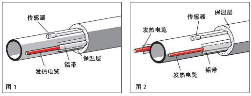 1、一根或多根發熱電纜沿管道拉直排列,見圖1、2。