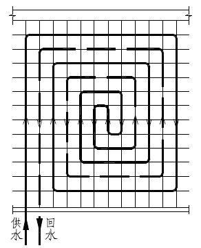3.5.3 加熱管采取不同布置形式時,導致的地面溫度分布是不同的。布管時,應本著保證地面溫度均勻的原則進行,宜將高溫管段優先布置于外窗、外墻側,使室內溫度分布盡可能均勻。加熱管的布置形式很多,通常有以下幾種形式,如圖3~圖7 所示。