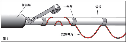 發熱電纜應固定在管道上,同時使用鋁帶固定而不是塑料帶。
